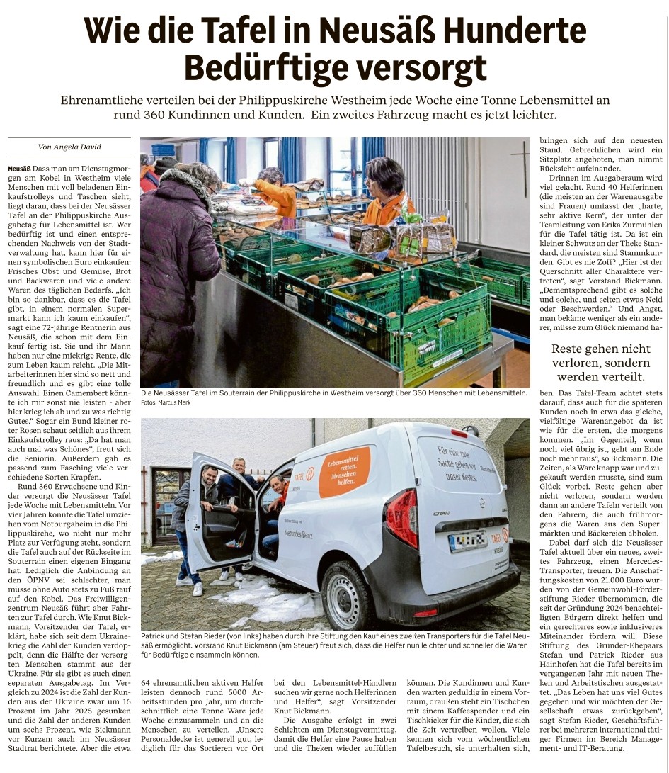 In der Ausgabe vom 13.02.2026 berichtet die Augsburger Allgemeine Zeitung über die Tafel Neusäß.