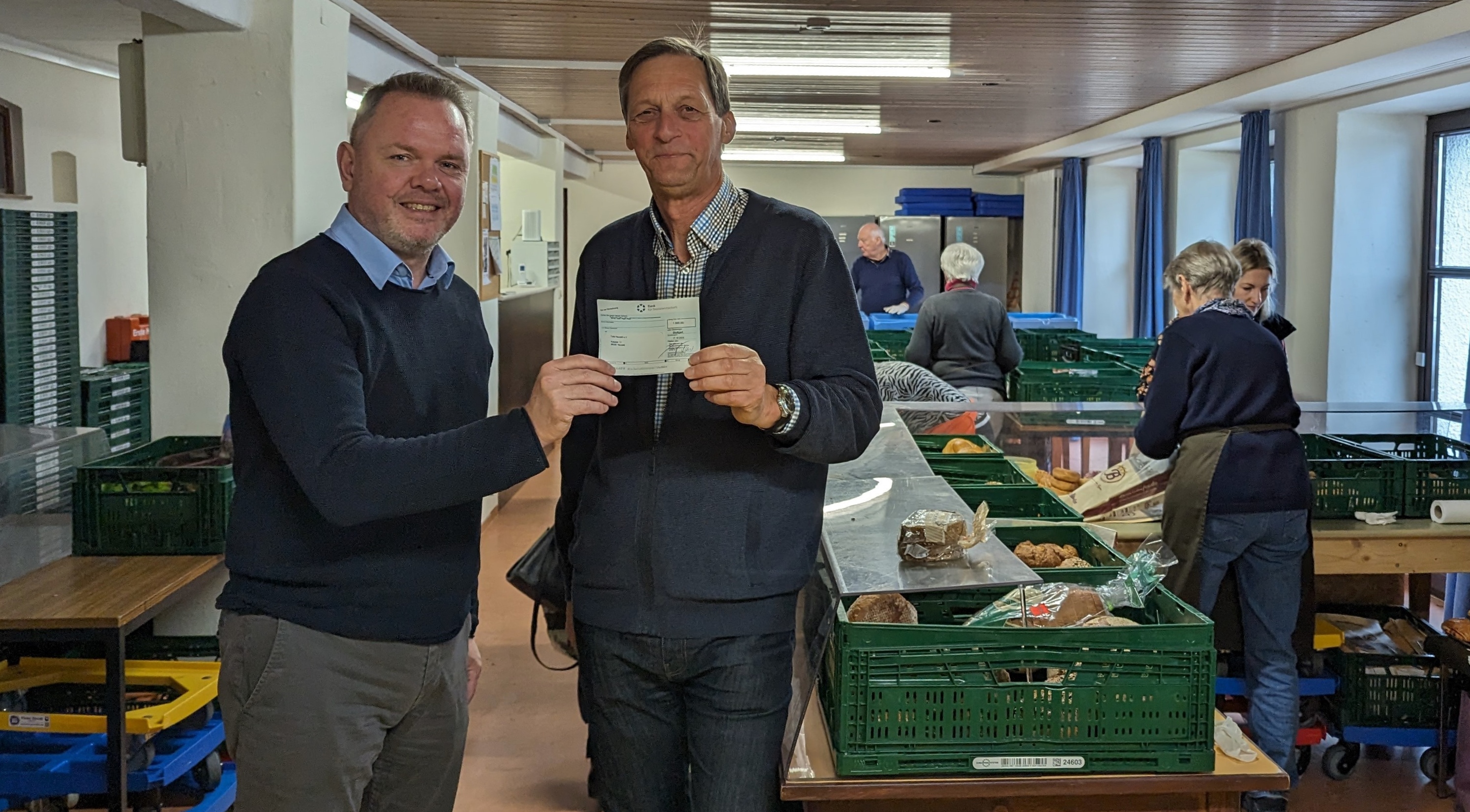 Scheckübergabe in den Ausgaberäumen der Tafel. Hierbei
